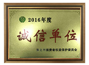2016年獲得淮北市消費(fèi)者權(quán)益保護(hù)委員會(huì)頒發(fā)的“誠信單位”。